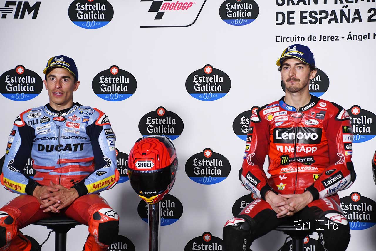スペインGP決勝レース終盤の、フランセスコ・バニャイアとマルク・マルケスの優勝争いの記事です。