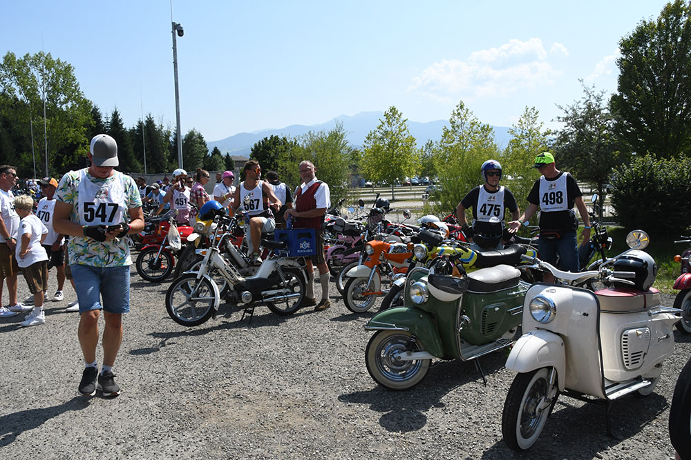 メディアも「ご自身の50㏄のモペッドと免許証があれば参加できますよ」と連絡をもらったのですが、日本から遠く離れたオーストリアの地にモペッドがあるわけもなく……、残念ながら参加は断念しました。ただ、モペッドがなくともメディア・シャトルに乗って参加者と一緒にコースを走ることはできました。