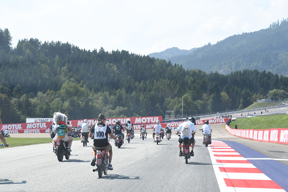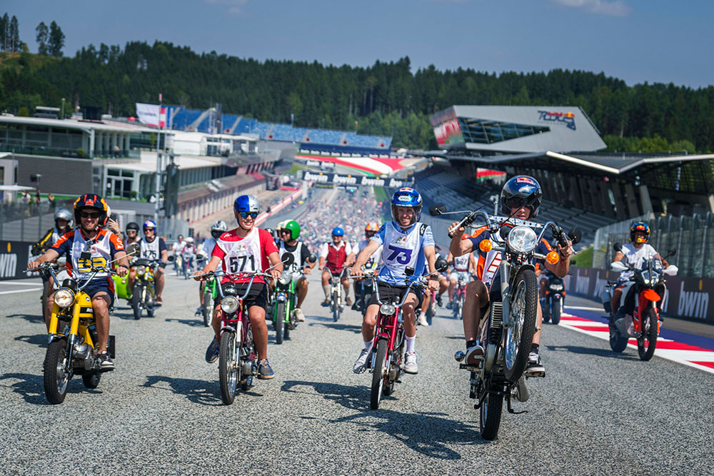 モペッドでレッドブル・リンクを走ったのは、数百人のモペッド愛好家だけではなく、MotoGPライダーのアレックス・マルケス、ホルヘ・マルティン、ペドロ・アコスタ、ブラッド・ビンダー、エネア・バスティアニーニ、ミゲール・オリベイラも参加しました。