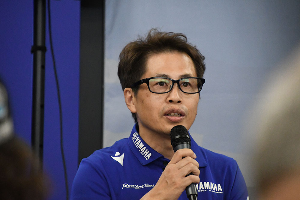 プレスカンファレンスはヤマハMS開発部長、鷲見崇宏さんの話から始まった。