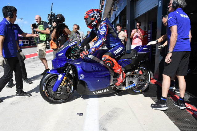 V4エンジン搭載のYZR-M1は、ワイルドカード参戦のアウグスト・フェルナンデスがコースで走らせるのに先駆けて、ヤマハのホスピタリティで行われた。