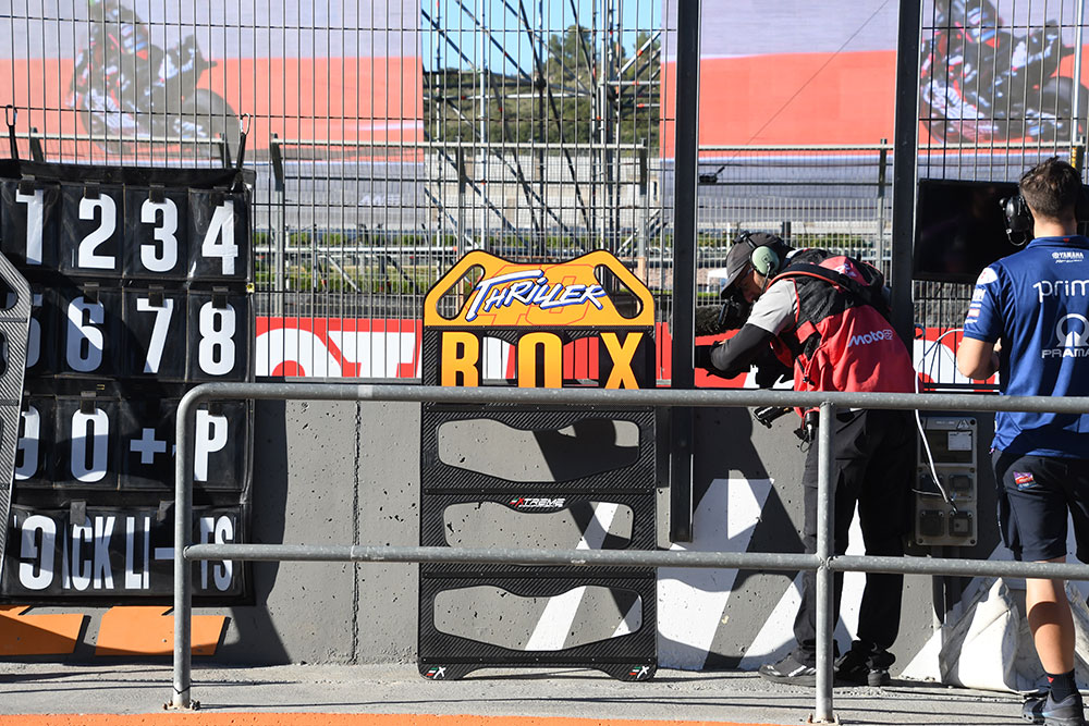 ジャック・ミラーのピットボードは、ニックネーム「Thriller」が全面に押し出されていました。