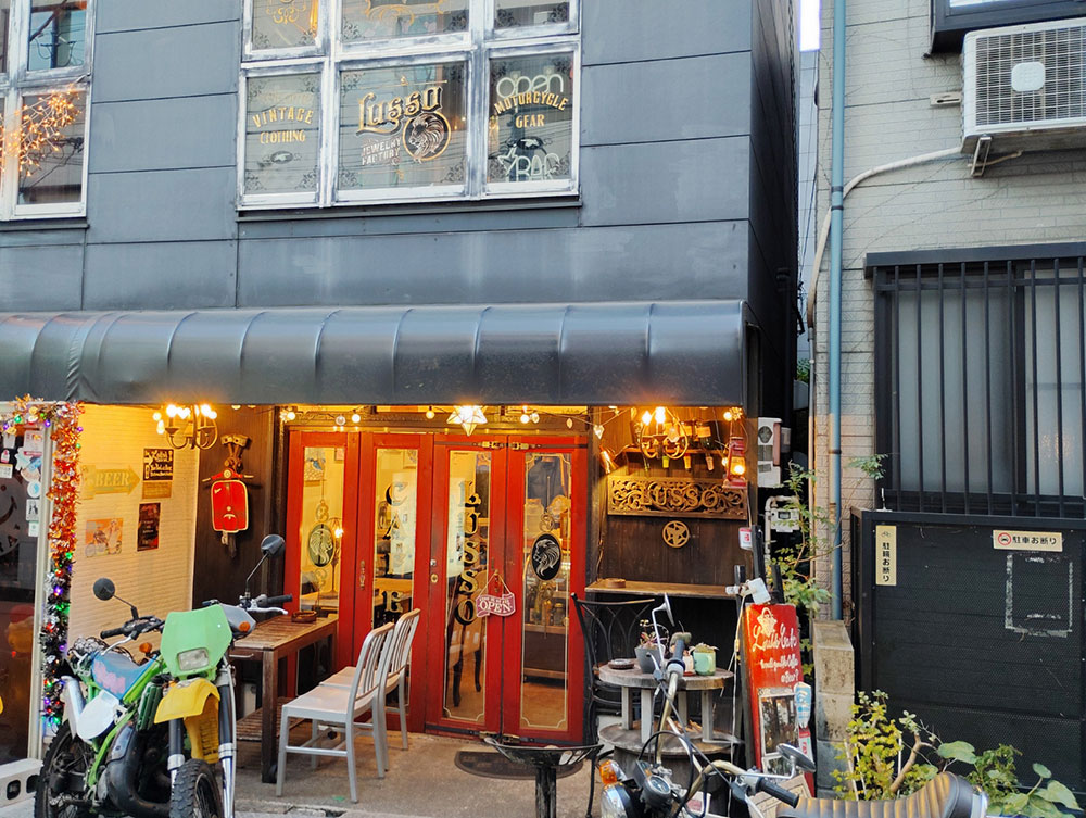 東京都世田谷区、環七通り沿い、東急田園都市線「駒沢大学駅」より徒歩約12分。立地がいいところに「バイク駐輪場あり」なのがうれしいところです。店内にはヘルメット置き場も完備されています!