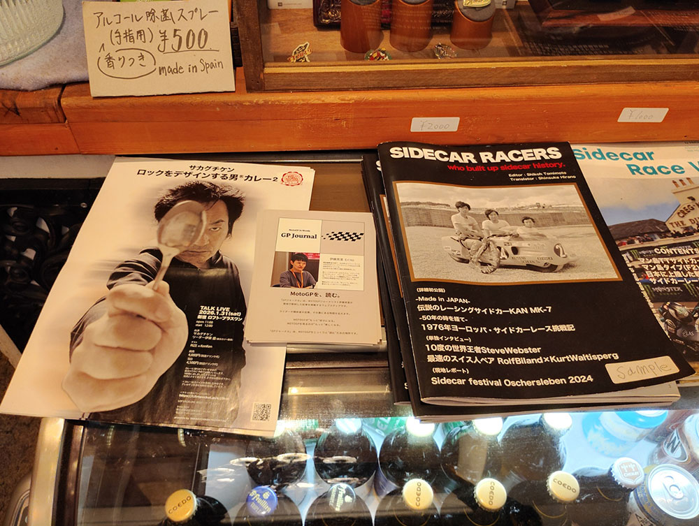 神奈川県座間市、国道246号沿いにあるライダーズカフェです。店内にはバイクの展示やイベントなどの写真がいっぱい。全日本ライダーの中村竜也選手のマシン、レーシングスーツや、「二輪文化を伝える会」の展示もあります。バイク好きにとっては、眺めているだけでも楽しいです。いろいろなバイクイベントも行われているようなので、ホームページやXをチェックしてみてくださいね。