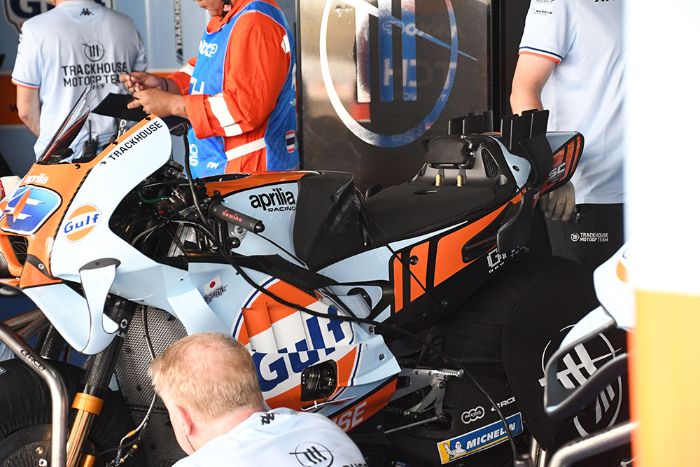 開幕戦タイGPの金曜日は、複雑な天候となった。昼頃から雨粒が落ちてはやむ、を繰り返す。15時から行われたMotoGPクラスのプラクティスでは、雨が降っていることを知らせるレッドクロスのフラッグが振られては収められ、また雨が降り出してレッドクロスのフラッグが振られる。その繰り返しだった。
